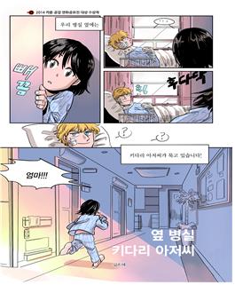 유동훈 문화체육관광부 국민소통실장과 김한곤 한국콘텐츠진흥원 부원장, 조관제 한국카툰협회장, 이효정 대전문화산업진흥원장, 오재록 한국만화영상진흥원장을 비롯해 만화가 강철수, 이해광 상명대 교수, 김병수 목원대 교수, 호중훈 인덕대 교수 등이 참석한 가운데 열린 이날 시상식에서는 ‘상급 종합병원의 병상 수를 외국인에게 확대’한 규제 개선 사례를 다룬 고지혜 씨의 스토리 만화 ‘옆 병실 키다리 아저씨’가 대상(문화체육관광부장관상, 상금 300만 원)을 받았다.