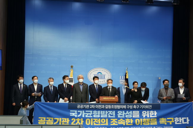 이들은 "지방소멸이 국가존망을 뒤흔드는 중대한 과제가 된 시점에서 2차로 남아 있는 공공기관들이 300~400개 정도 되는데 지방으로 이전해야 한다는 촉구 결의안을 오늘 오전 국회에 제출했다"고 발표했다.