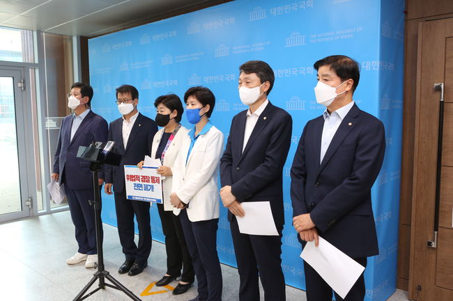 더불어민주당 행정안전위원회 소속 의원들은 22일 국회 소통관에서 기자회견을 갖고 행정안전부가 전날 발표한 ‘경찰제도개선 자문위원회 권고안’을 강력 비판했다.