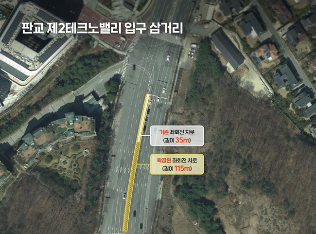 특히 오는 6월까지는 대왕판교 TG에서 금토동삼거리까지 이어지는 달래내로를 기존 4차로에서 6차로로 확장하고, 대왕판교로 2개소에는 판교테크노밸리 입주기업의 출퇴근 수요를 고려한 셔틀버스 임시 승하차 구간도 조성할 예정이다.