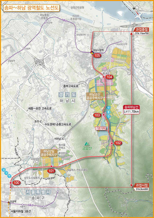기본계획에 따르면, 송파하남선에는 오금역에서 하남 감일지구, 교산신도시를 거쳐 하남시청역에 이르는 6개 역이 신설된다. 특히 지하철 5·8호선, GTX, SRT 등과 환승 연계가 가능해지면서 수도권 동남부 지역의 광역교통망이 대폭 강화될 전망이다.