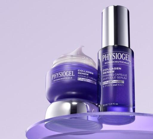 ‘콜라겐 리뉴’는 누적 300만 개[1] 이상 판매된 피지오겔의 프리미엄 안티에이징 라인 ‘사이언수티컬즈’의 신규 라인업으로, 피부 장수 과학(Science of Skin Longevity)을 접목해 피부 노화의 근본 원인 케어를 돕는 ‘퍼밍 캡슐 앰플 세럼’과 ‘링클 크림’을 선보였다.