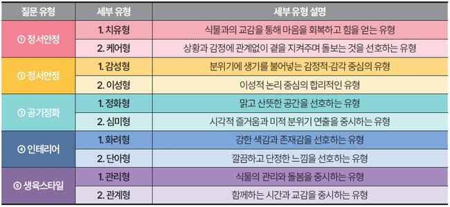 반려식물로부터 기대하는 기능과 개인 성향에 관한 질문 유형