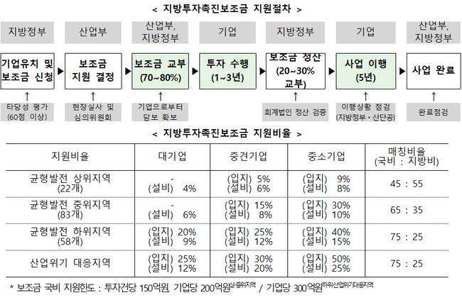 산업통상자원부는 기업의 지방투자를 촉진하기 위해 `지방자치단체의 지방투자기업 유치에 대한 국가의 재정자금 지원기준`을 개정해 2월 10일부터 시행한다.