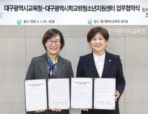 대구시교육청은 4월 1일(수) 시교육청 접견실에서 대구학교밖청소년지원센터(센터장 최미송)와 `학교 밖 청소년 지원을 위한 업무협약`을 체결했다.이번 업무협약은 학교 밖 청소년이 건강한 사회의 구성원으로 성장할 수 있도록 양 기관 간의 긴밀한 연계와 협력 체계를 강화하기 위해 마련됐다.양 기관은 이번 협약을 통해 ▲학교 밖 청소...