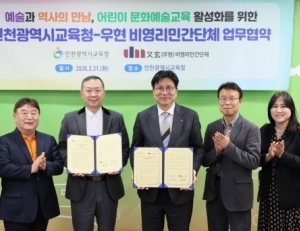 인천광역시교육청(교육감 도성훈)은 지난 31일, 비영리민간단체 `우현`과 어린이 문화예술교육 활성화 및 인천 문화유산 계승 확대를 위한 업무협약을 체결했다.이번 협약은 지역의 문화예술과 역사를 유기적으로 연결해, 인천 문화유산이 지닌 가치를 예술적 시각으로 재해석하고 이를 확산하고자 마련됐다.양 기관은 협약에 따라 ▲학교 ...