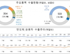 3월 1~20일 수출이 반도체 호조에 힘입어 전년 대비 50% 넘게 증가하며 역대 최대 실적을 기록했다.관세청이 발표한 3월 1일부터 20일까지의 수출입 현황 잠정치에 따르면, 수출은 533억 달러로 전년 동기 대비 50.4% 증가했다. 같은 기간 수입은 412억 달러로 19.7% 늘었으며, 무역수지는 121억 달러 흑자를 기록했다. 이는 동기간 기준 역대 최대 수출...