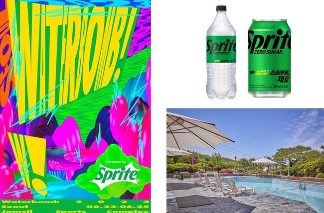 이미지 설명: (왼쪽부터 시계방향) `2023 워터밤 서울 위드 스프라이트` 포스터, 코카-콜라사 `스프라이트 제로`, 경주 코오롱호텔 `야외 물놀이장` (사진 제공=각 사)