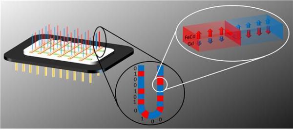 ▲ 페리자성체를 이용한 자구벽 메모리 소자의 개념도이 연구는 물리·재료 분야 최고 권위의 학술지인 네이처 머티리얼스 (Nature Materials) 지난 9월 25일자에 게재됐다.