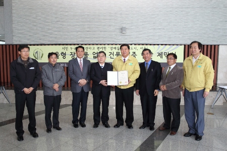 ‘서울형 장애물 없는 건물 인증제’는 장애인, 노인, 임산부 등 사회적 약자가 개별 시설물에 접근 및 이동하는 것에 불편함이 없도록 장애인 편의시설이 적정하게 설치되고 관리되는지 여부를 서울시에서 평가하고 인증해주는 제도이다.