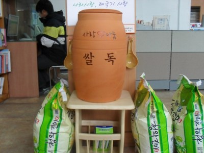 ▲ 삼전동 주민센터에 설치된 사랑♡나눔 쌀독.