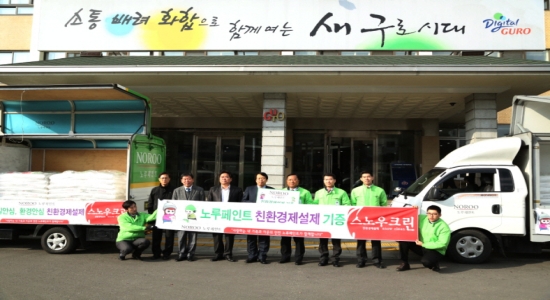 이에 지난 11일 구청 현관 앞에서 '(주)노루페인트 후원업체 친환경 제설제 기증식'행사를 진행했다.