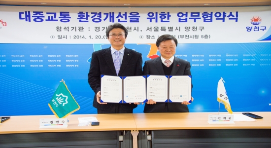 양천구(구청장권한대행 전귀권)는 주민들에게 보다 편리한 교통편의를 제공하고, 인접 도시와의 교류를 활성화하기 위하여 경기도 부천시와 ‘대중교통 환경 개선을 위한 업무협약’을 체결하였다고 밝혔다.