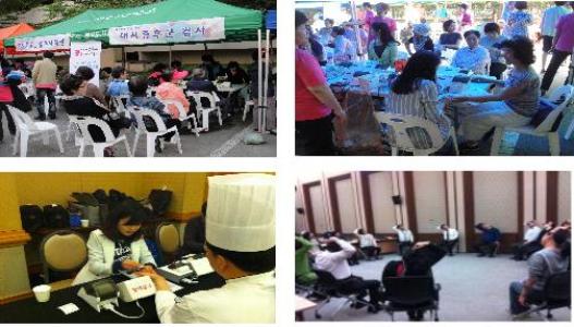 이들 중 가장 인기 있는 프로그램인 ‘찾아가는 보건소 건강체험관’은 간호사, 영양사, 운동 처방사, 약사 및 관련 공무원 80여명이 현장에서 주민들에게 골밀도, 체성분, 혈액검사 등 각종 검사와 대사증후군, 암, 우울 및 스트레스, 치매 등의 상담을 무료로 실시한다.