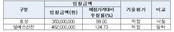 ▲ 이 사건 입찰의 개찰 현황효성은 입찰자를 평가하는 기술평가회의에 효성의 직원을 엘에스산전의 직원인 것처럼 참여시켜 엘에스산전이 입찰 적격자로 판정될 수 있도록 했다.
