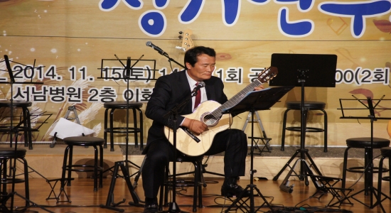 양천구 지역 통기타동호회 '사노라면' 은 지난 15일 지역주민과 장애아동들을 위해 서남병원 2층 이화홀에서 사랑의 하모니 통기타 연주회를 열었다.