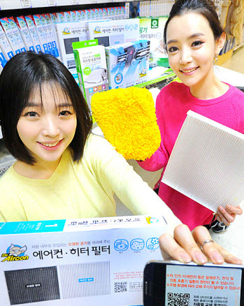 특히 황사 미세 먼지를 잡아주는 차량용 에어컨 필터는 특가에 판매한다. 에어컨 필터 제품 겉면에 QR코드를 스캔하면 혼자서도 쉽게 장착할 수 있도록 교체 방법을 확인해 볼 수 있다.