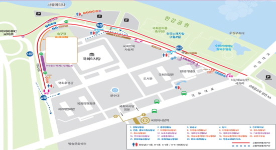 교통이 통제되는 곳은 국회 뒤편 여의서로 1.7㎞ 구간과 순복음교회 앞둔치 도로 진입로에서 여의하류 IC 지점부 1,5㎞ 구간이다.