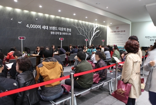 ▲ '창원 감계 힐스테이트 2차' 모델하우스에서 방문객들이 상담을 기다리고 있다.