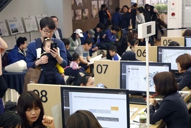 ▲ 서울 중랑구 묵동에 위치한 e편한세상 화랑대 모델하우스를 찾은 이들이 청약상담을 받고 있다. /제공=대림산업