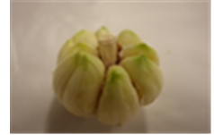 ▲ 마늘 끝 부분의 녹색 반점‘홍산’ 마늘은 다른 마늘에 비해 조단백질 성분이 많고, 미량 원소인 인과 마그네슘, 칼슘, 아연, 망간 성분도 10%∼20% 이상 함유하고 있다.