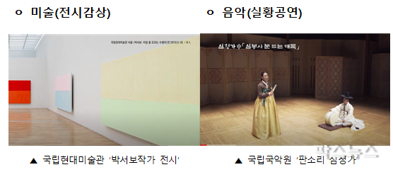 온라인 수업으로 실황 공연, 가상현실 전시 등을 보며 문화예술 체험 학생들은 이제 온라인 수업으로 문체부 소속 국립기관 및 산하 예술기관 10곳에서 제작한 실황 공연 영상, 전시장 가상현실 등 분야별 전문 콘텐츠를 보며 집에서도 쉽게 문화예술을 체험할 수 있다.