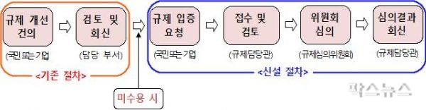 요청이 접수되면 교육부는 60일 이내에 규제심의위원회에서 규제 정부입증책임제를 적용해 개선 여부를 심의한 후 결과를 입증 요청자에게 회신한다.