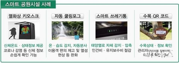 정부는 스마트시티와 연계한 스마트공원 시범 조성사업을 통해, 첨단 기술을 접목한 공원을 조성·확산해나갈 계획이라고 전했다.