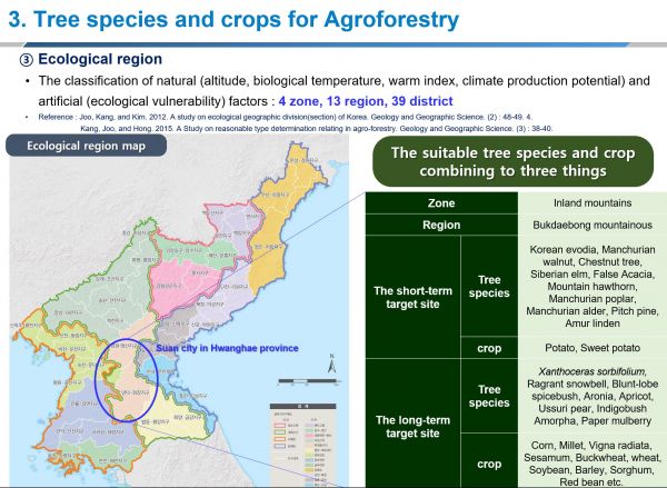 이번 토론회의 화두인 ‘임농복합경영’은 경사지에 나무와 농작물을 혼합 재배하는 것으로 산악지형이 대부분인 북한에 적합한 산림 경영법이다.