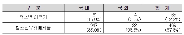 청소년유해매체물에 해당되는 앱 통계 (자료=여성가족부)