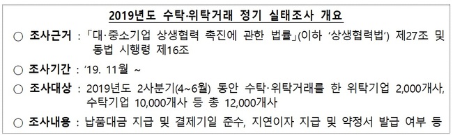 2019년도 수탁 · 위탁거래 정기 실태조사 개요 (자료=중소벤처기업부)