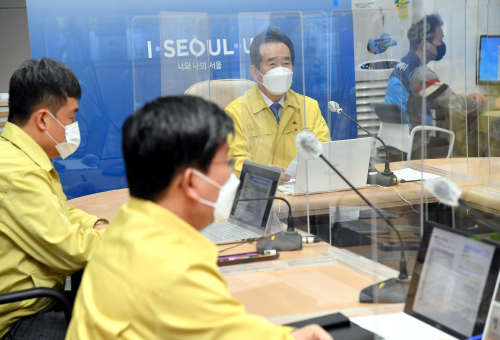 정세균 국무총리가 28일 서울시청에서 열린 코로나19 중앙재난안전대책본부 회의를 주재하고 있다. (사진=국무총리실)정세균 국무총리의 주재로 12월 28일 서울시청에서 코로나19 중앙재난안전대책본부 회의가 열렸다.