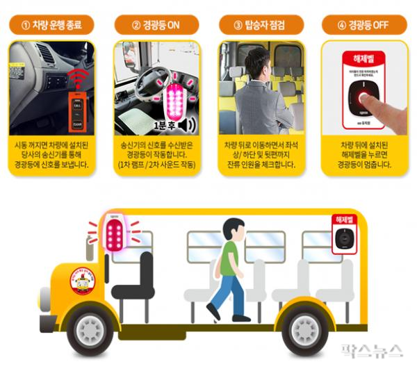 또한 설치 대상은 신규 제작차량 뿐만 아니라 현재 운행하고 있는 모든 어린이통학버스를 대상으로 한다.