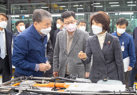 한정애 장관은 이 자리에서 무공해차 핵심인 수소차 생산시설을 점검하고 관계자들을 격려하는 한편, 2021년 무공해차 30만대 달성을 위해 차량의 적기 공급에 최선을 다해 달라고 당부했다.