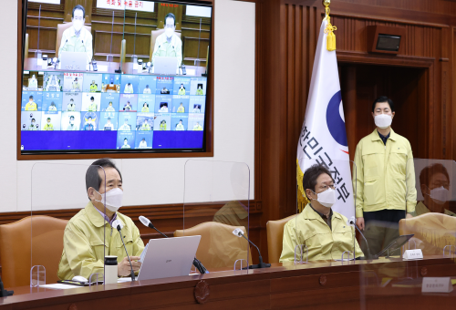 정세균 국무총리가 21일 세종로 정부서울청사에서 열린 코로나19 중앙재난안전대책본부 회의를 주재하고 있다. (사진=국무조정실)
