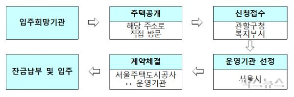운영기관 신청자격은 국가, 지방자치단체 또는 관련 법령에 따라 신고나 등록된 단체로 최근 3년간 입주대상자를 보호·지원한 실적이 있고, 국가나 지방자치단체로부터 운영비 지원을 받고 있는 법인 등이다.