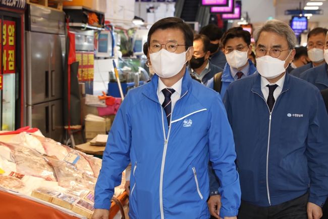 문성혁 해양수산부 장관은 12일 수산물 원산지 관리 및 단속 실태 등 수산물 안전관리 현장을 점검하기 위해 노량진수산물도매시장을 방문했다.