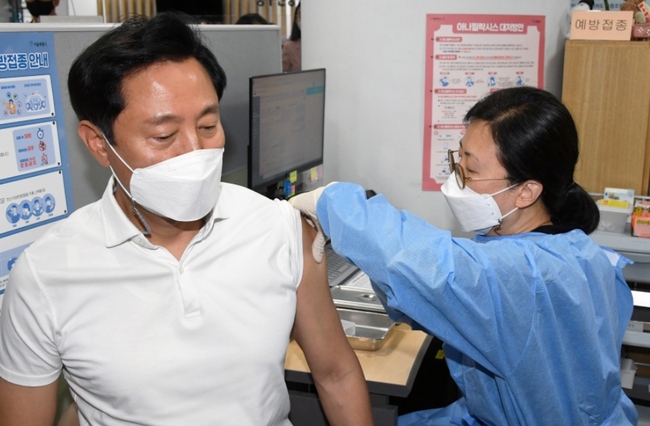 오세훈 서울시장이 5월 28일 코로나19 예방접종을 맞고 있다. (사진=서울시)