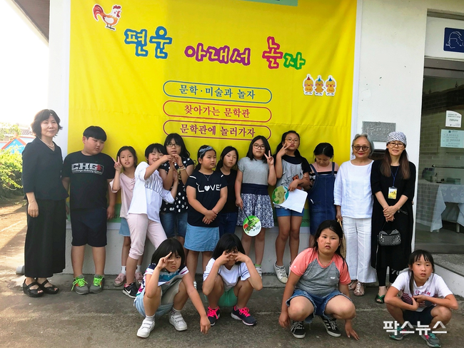 6월에 개강한 ‘편운 아래서 문학·미술과 놀자’는 문학과 미술 분야에 다양한 경력과 재능이 있는 강사진들이 난실리 소재 톡톡플러스지역아동센터 어린이들에게 다양하고 알찬 문학과 미술 교육을 진행하였다. 어린이들의 눈높이에 맞춘 체험 위주의 학습은 어린이들이 문학과 미술의 숨은 재능을 발휘하여 100여점이 넘는 작품을 탄생시켜 놀라움을 자아낸다.