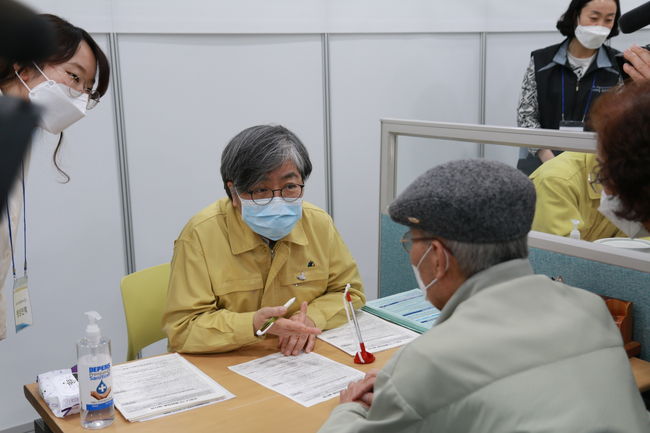 22일 0시 기준 코로나19 신규 확진자는 395명이다. 사진은 8일 정은경 단장의 어르신 예방접종 현장 일일 자원봉사 활동 당시. (사진=질병관리청)