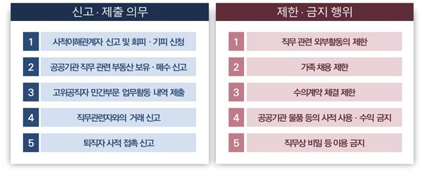 앞으로 공직자의 내부 정보를 이용한 부동산 투기, 가족 등 사적이해관계를 이용한 불공정한 직무 수행, 고위공직자 가족과의 수의계약 체결 등 이해충돌 상황이 관리·예방될 전망이다.