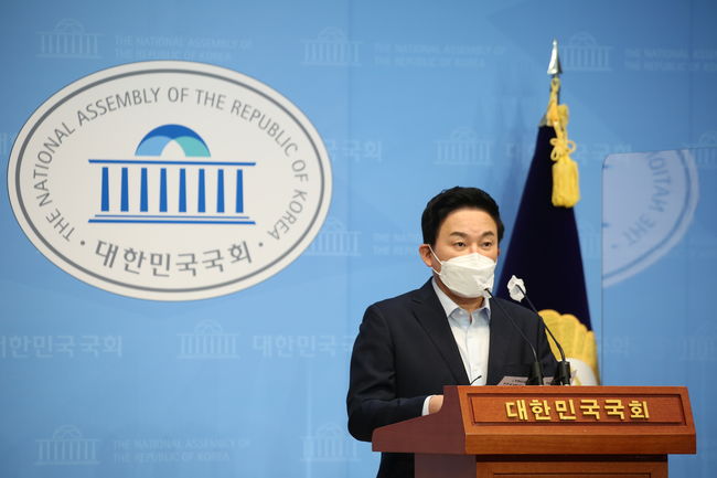 국민의힘 대선주자 원희룡 전 제주지사는 28일 국회 소통관에서 `대장동 게이트 관련 긴급 기자회견`을 열었다.