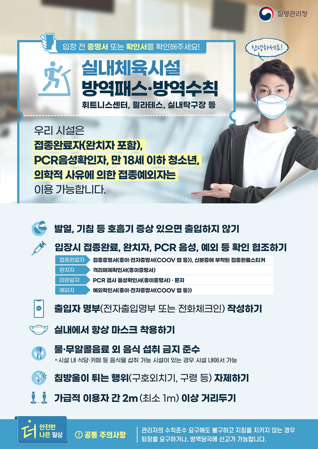 실내체육시설 방역패스 · 방역수칙 안내문 (이미지=질병관리청)