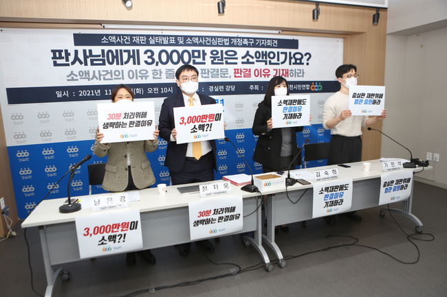 경제정의실천시민연합은 30일 서울 종로구 경실련 강당에서 ‘소액사건 재판 실태 발표 및 소액사건심판법 개정 촉구’ 주제의 기자회견을 개최했다.