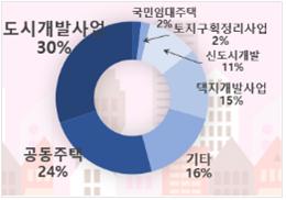 `도시계획 사업` 관련 민원 중에서는 사업지구에서 제척 요구, 이주대책 대상자 선정 요구 등 `도시개발 사업지구 지정·해제 및 보상`과 관련된 민원이 30.4%로 가장 많았다. 다음으로는 진출입로 단절 해소 요청 등 `공동주택지구` 관련 민원이 23.8%, `택지개발사업` 관련 민원이 15%다.