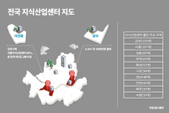 스타트업, 첨단산업기업들이 몰려 있는 지식산업센터 부동산 가격이 천정부지로 오르고 있다. 특히 스타트업 신생기업들에게 인기가 있는 서울 성수동 지식산업센터 매매가는 3.3㎡당 3000만원을 돌파했다.
