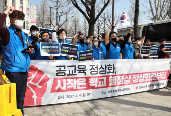 조합원들은 “`공정과 상식으로 만들어가는 새로운 대한민국`을 내세운 윤석열 대통령 당선인은 `선생님 업무 부담 경감, 아이들 학습권 보장`을 세대 대상별 맞춤으로 후보 공약한 바 있다”고 하면서 “그러나 이는 복잡 다양한 신분으로 구성되어 첨예한 노동시장의 축소판인 학교현장에 대한 이해 없이 접근한 갈라치기 공약이 될 수 있다”고 지적했다.