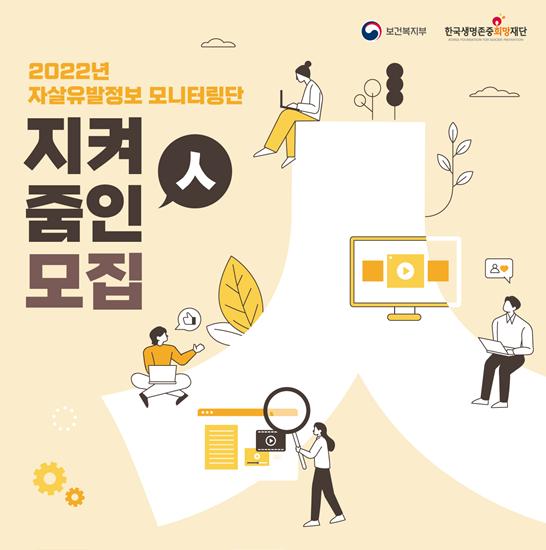보건복지부와 한국생명존중희망재단은 2022년 미디어 자살 정보 모니터링단 ‘지켜줌인’ 모집을 시작한다고 밝혔다.