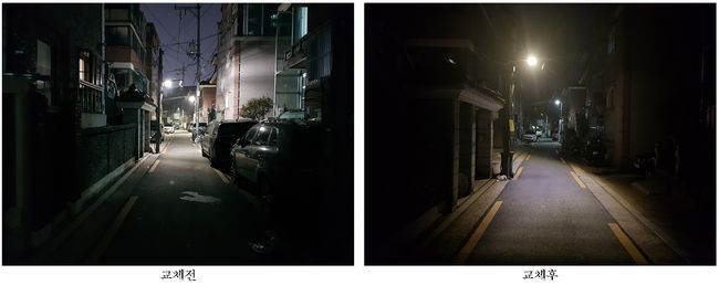 영등포구 `주택가 빛환경 개선을 위한 노후 보안등기구 교체 사업` LED 보안등 교체 전후사진