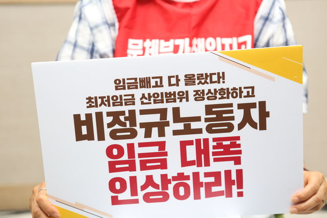 노조는 "중앙행정기관 비정규직 노동자 임금은 기획재정부가 일언반구 협의도 없이 일방적으로 산정한다"며 "인권위는 이런 문제를 지적했지만, 기재부는 예산편성은 고유권한이라며 꿈쩍도 하지 않는다"고 했다.